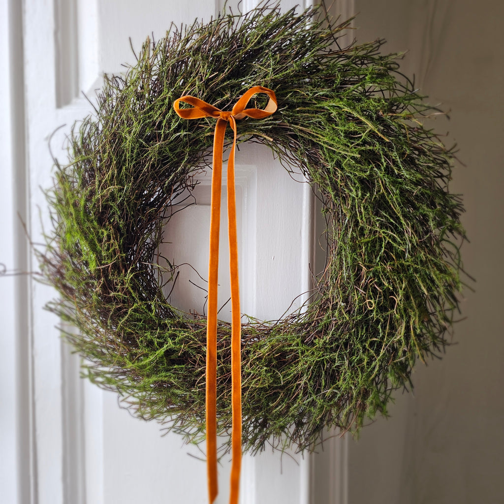 The perfect understated winter wreath. This neutral wreath will adorn your door from late Autumn straight through until early springtime. Finished with a lush velvet bow.